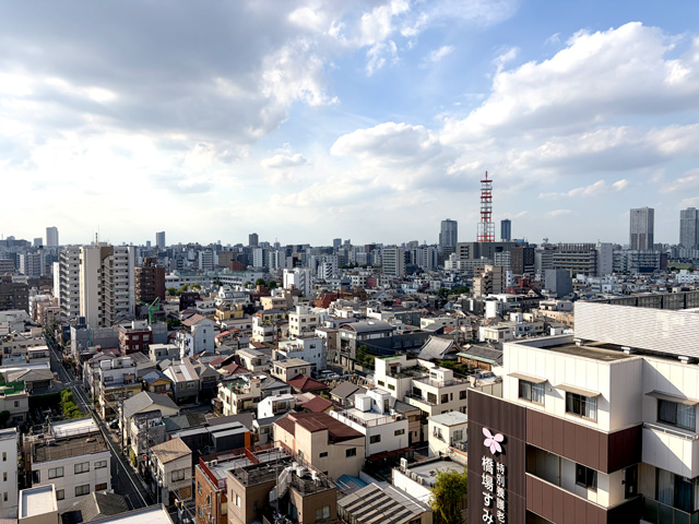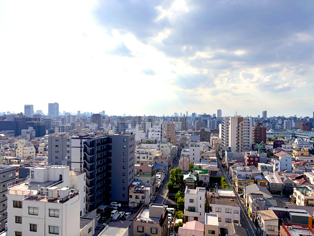 住戸のバルコニーからは近隣の浅草エリアはもちろん、遠くのエリアまで見渡せるため、