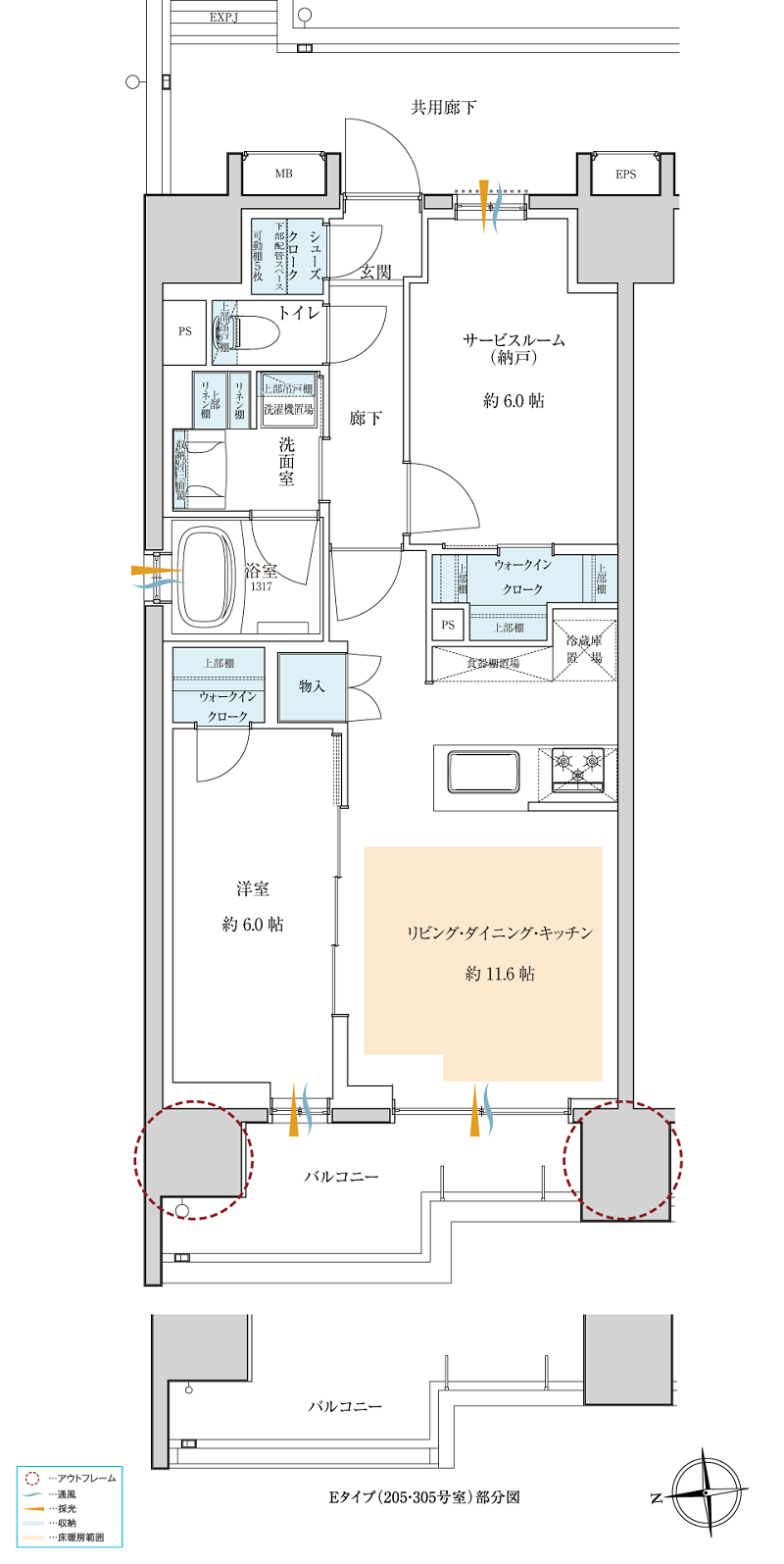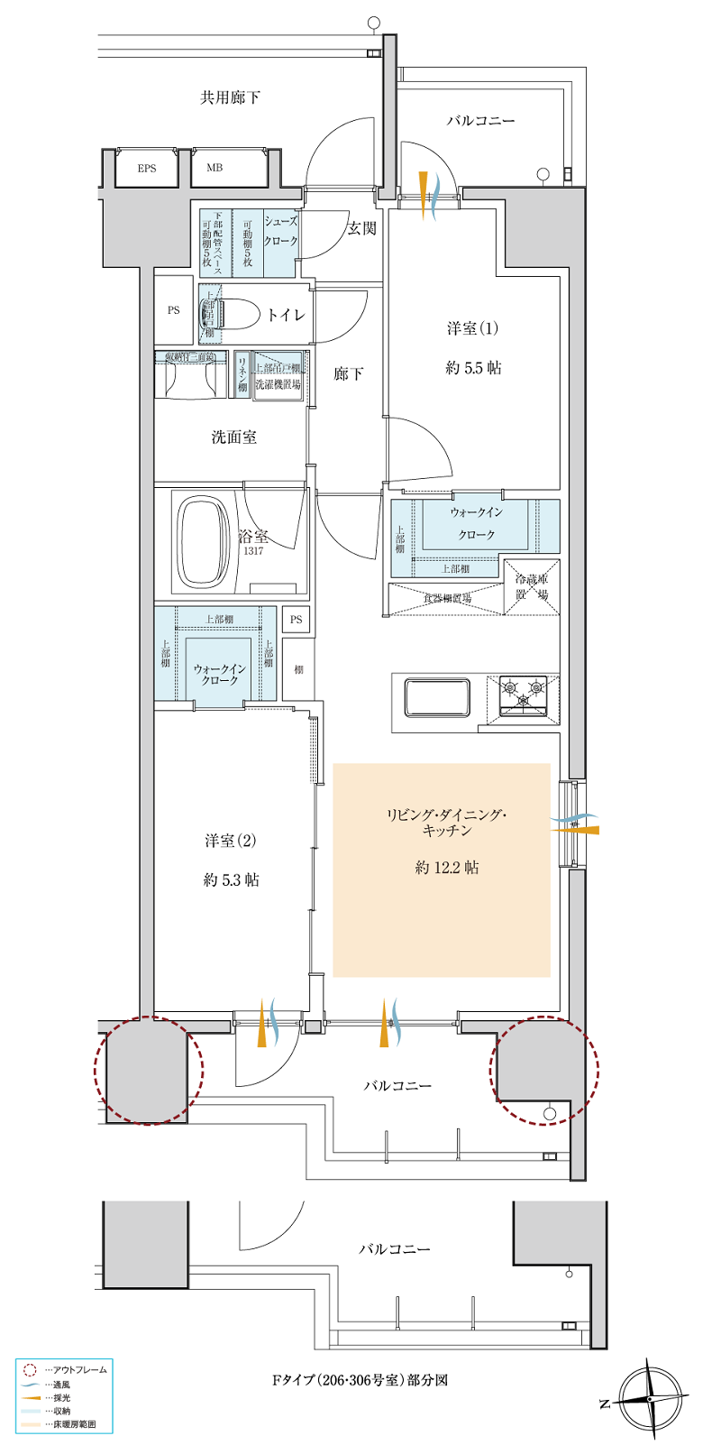 Eタイプ(1LDK+S+2WIC+SC)、Fタイプ(2LDK+2WIC+SC)がございます。
